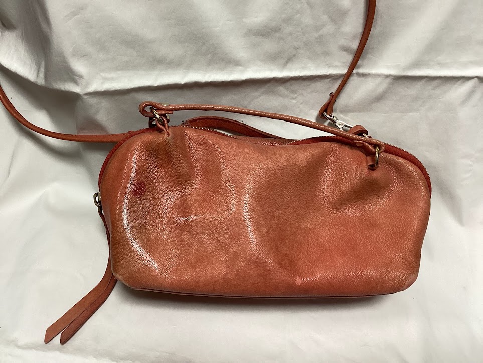 【修理実績】ショルダーバッグの全面補色(カラー再生) 今回は、全体的色が褪せてし …