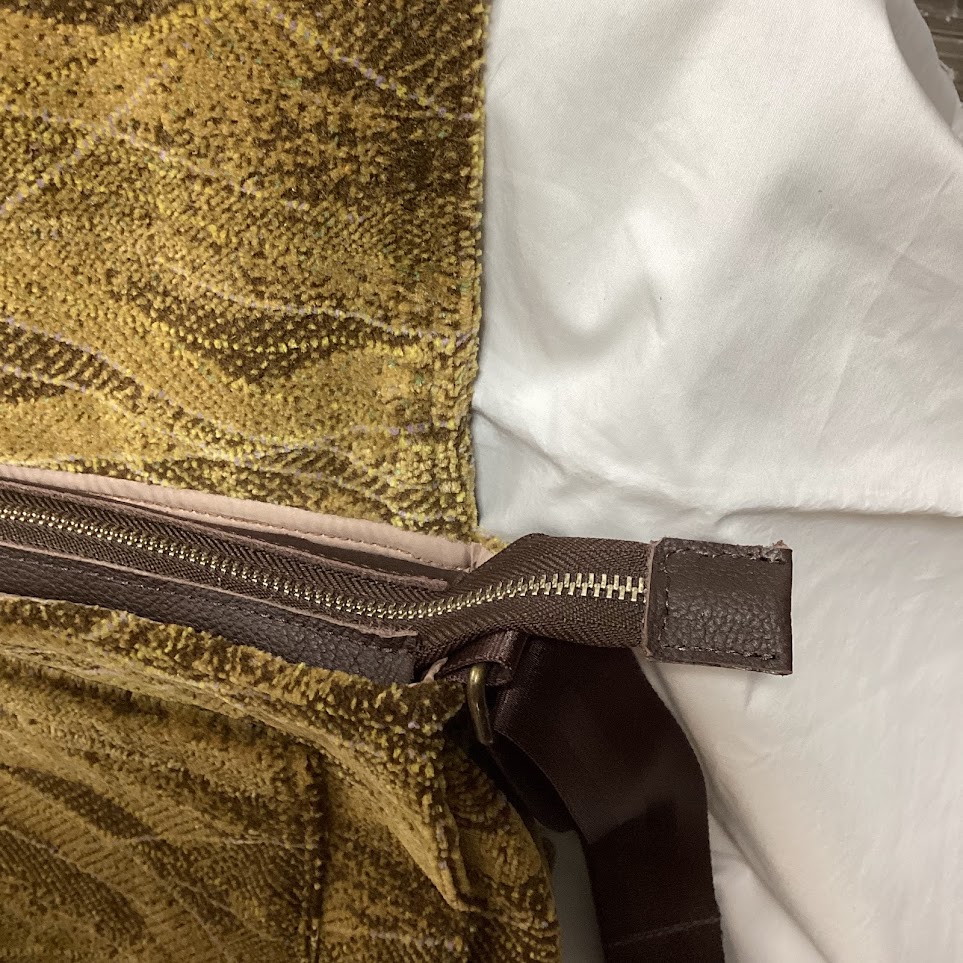 今回は、現状ファスナーのついていないショルダーバッグにファスナーを追加してほしいとのご相談。