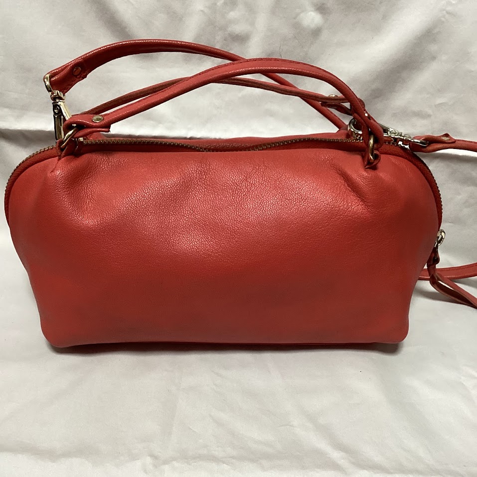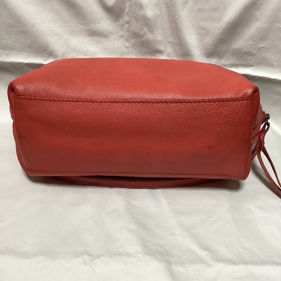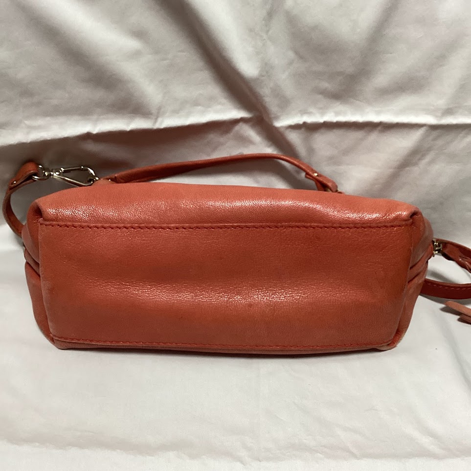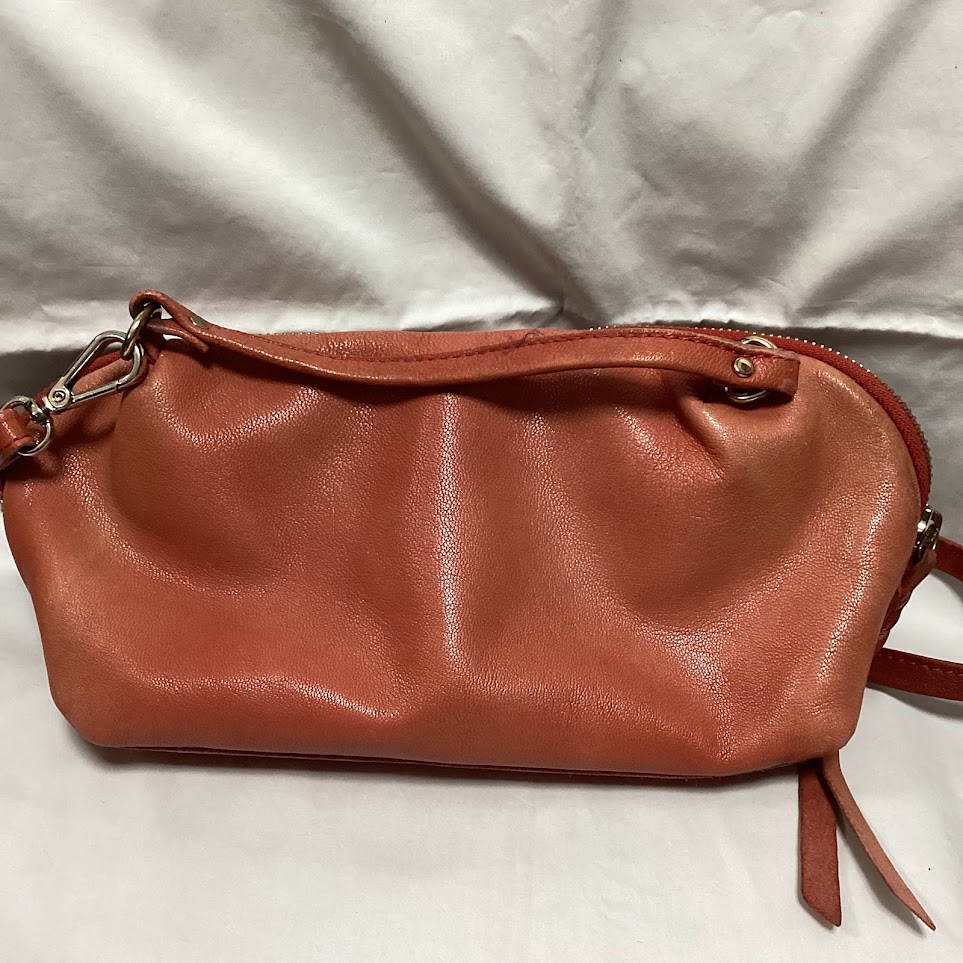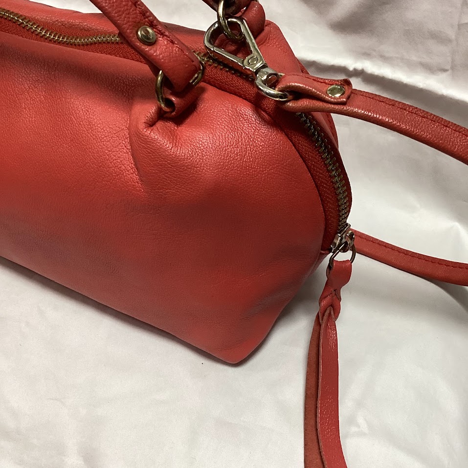 今回は、全体的色が褪せてしまったショルダーバッグの補色のご依頼。元のサーモンピンクカラーは色褪せで褐色になり、部分的に雨による水染みも目立ちます。