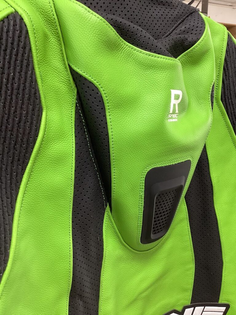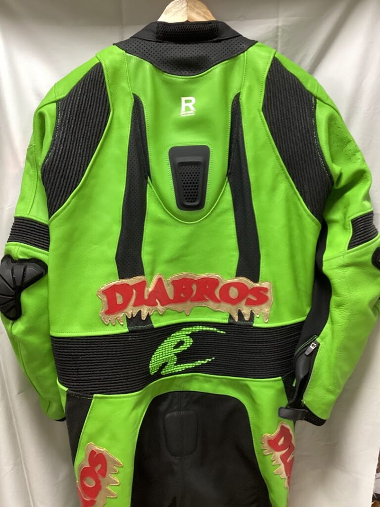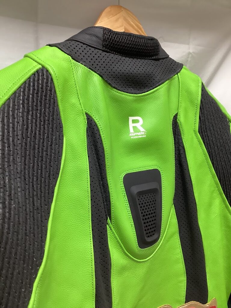 今回は、モタード走行で使用する革ツナギの脊椎パッド(コブ)を取り外したいとのご依頼。モタードではダート区間の走行もあるため、姿勢や他の装備品との組み合わせによっては脊椎パッドが邪魔になってしまうことがあります。